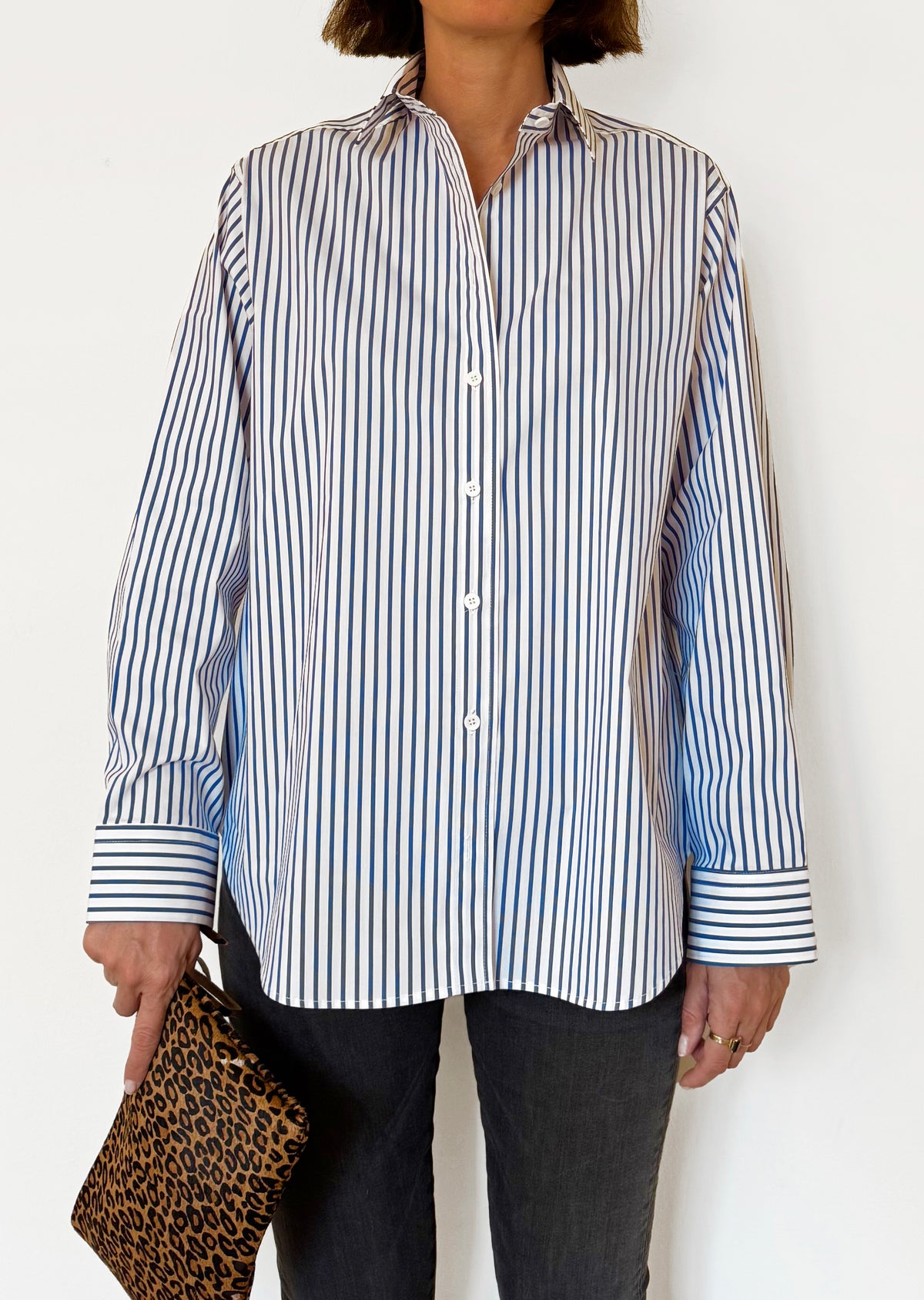 Camicia Lamentana a righe fit over, realizzata con un fine cotone mercerizzato che conferisce compatezza e finezza, qualità che rimangono intatte anche dopo il lavaggio.