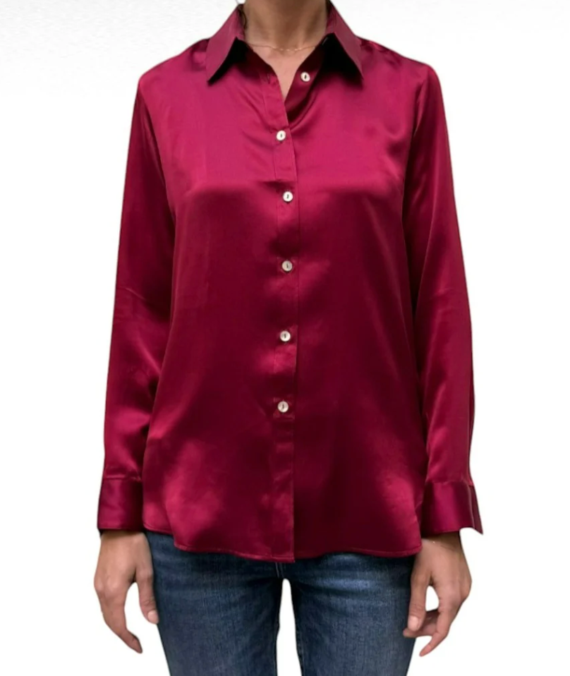 Camicia Ladelfina in raso di seta lavato, dal taglio regular.