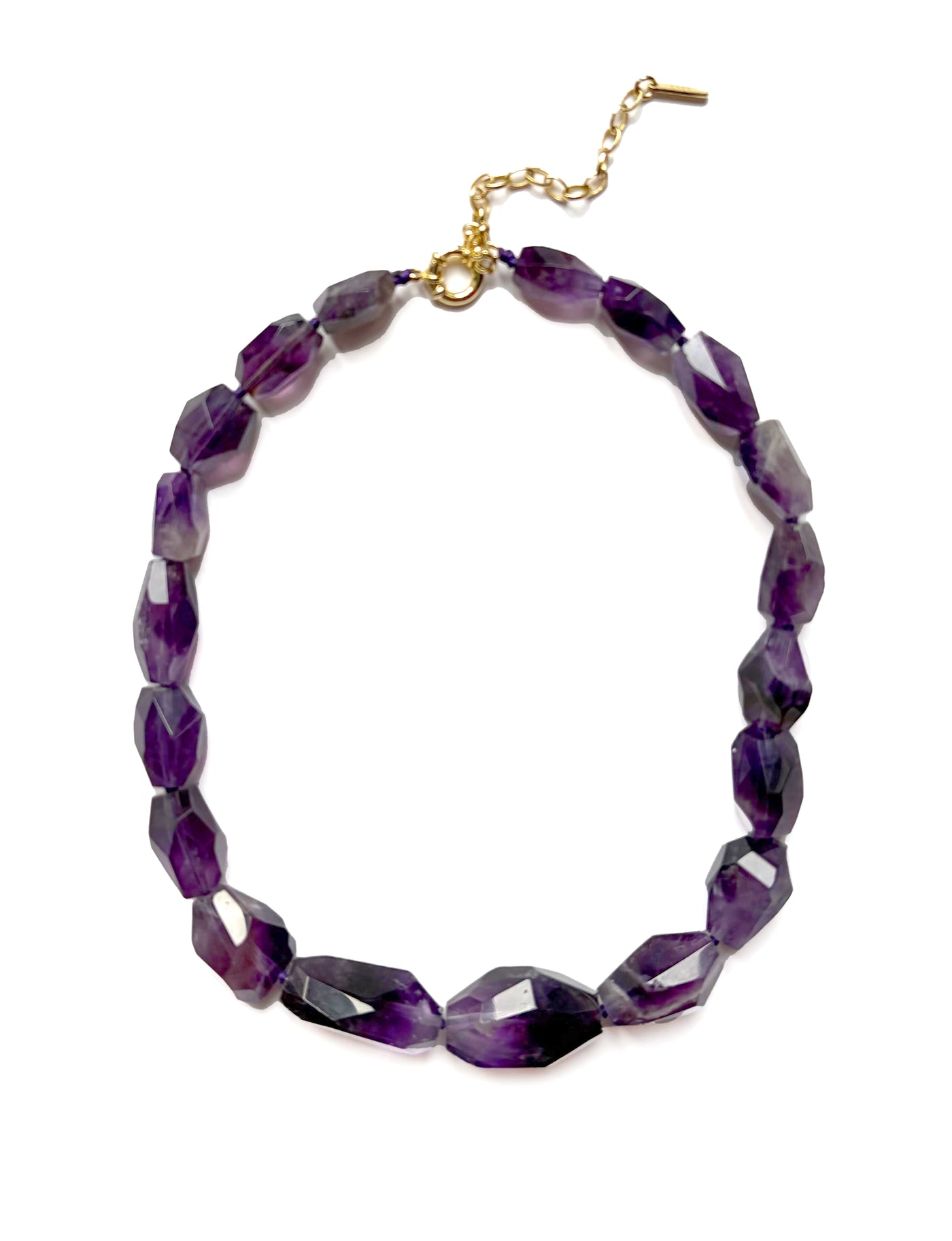 Collana in ametista con chiusura singola in argento placcato oro 14 Kt.