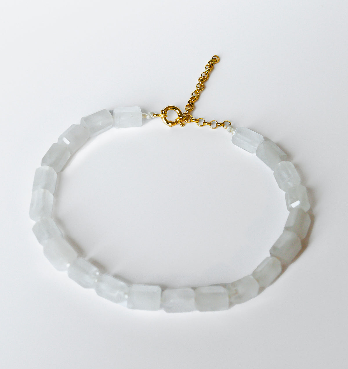 Collana in quarzo bianco con chiusura singola in argento placcato oro 14 Kt.