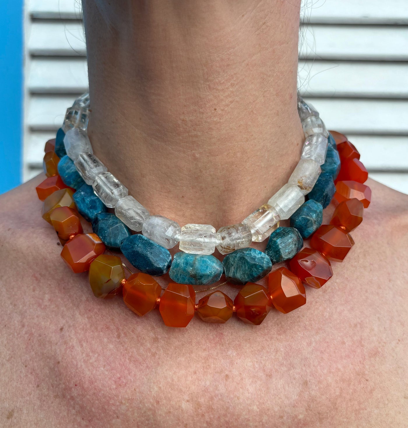 Il quarzo bianco è una delle varietà più comuni e apprezzate nel mondo delle pietre preziose e semi-preziose. Con il suo aspetto elegante e versatile, è particolarmente utilizzato per la creazione di collane.