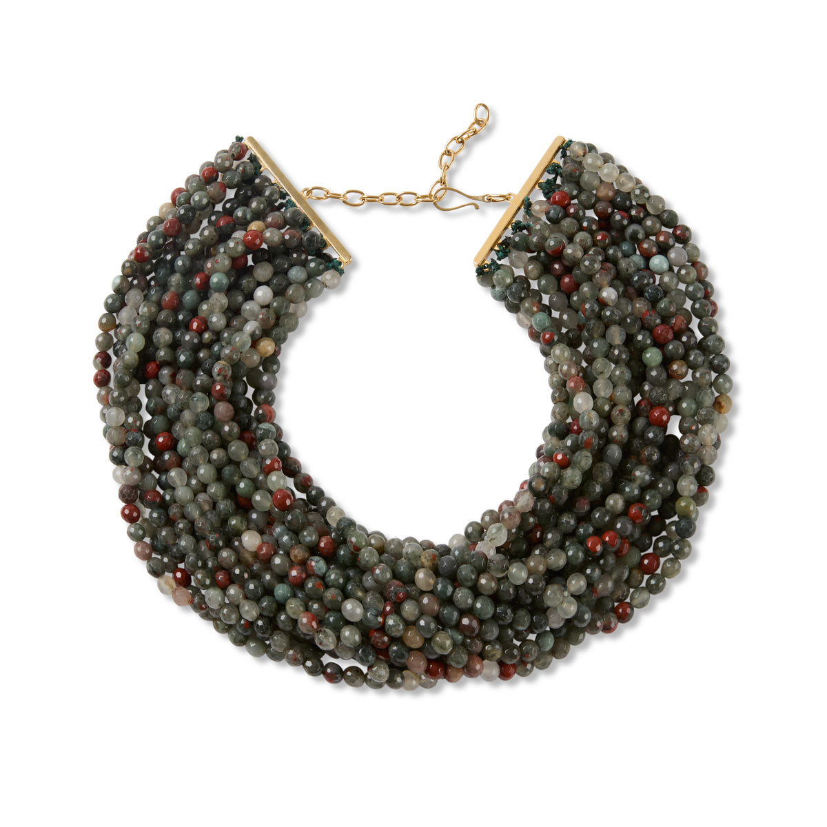 Collana in african blood a 20 filicon chiusura a gancio in ottone dorato.